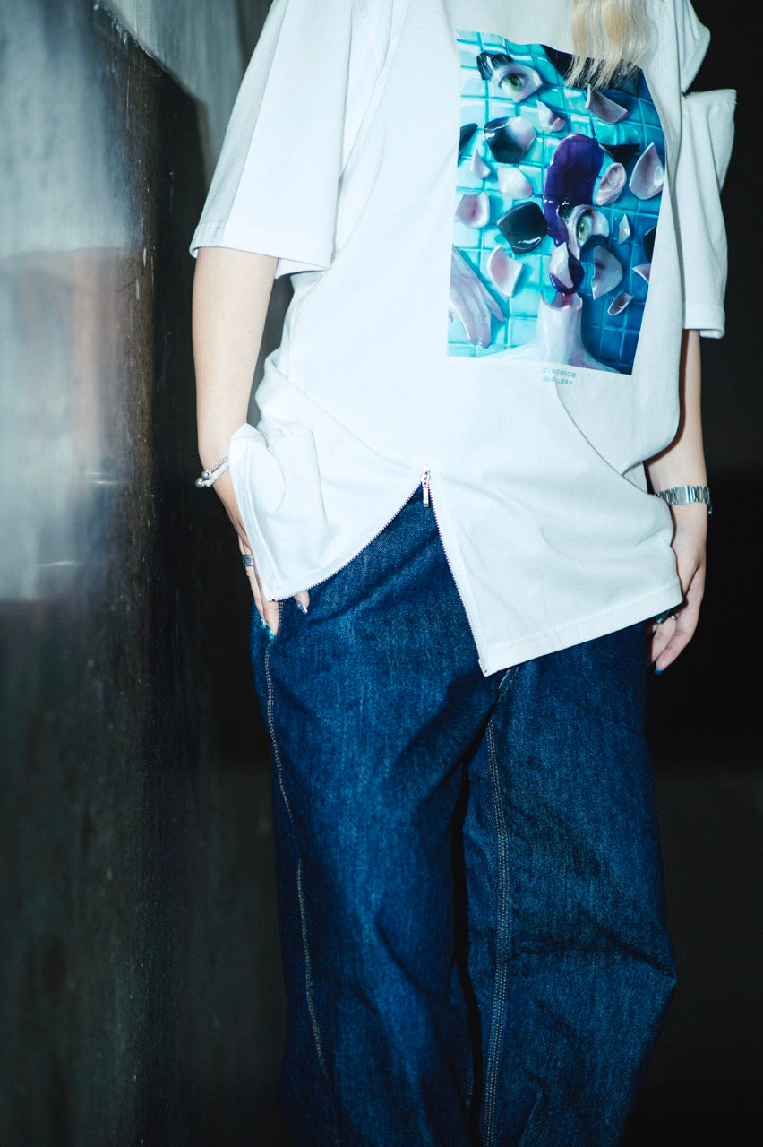 短袖拉鍊T恤的設計以碎片化的圖像為視覺,呼應了拉鍊的設計元素。