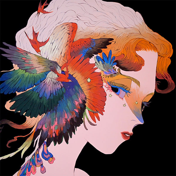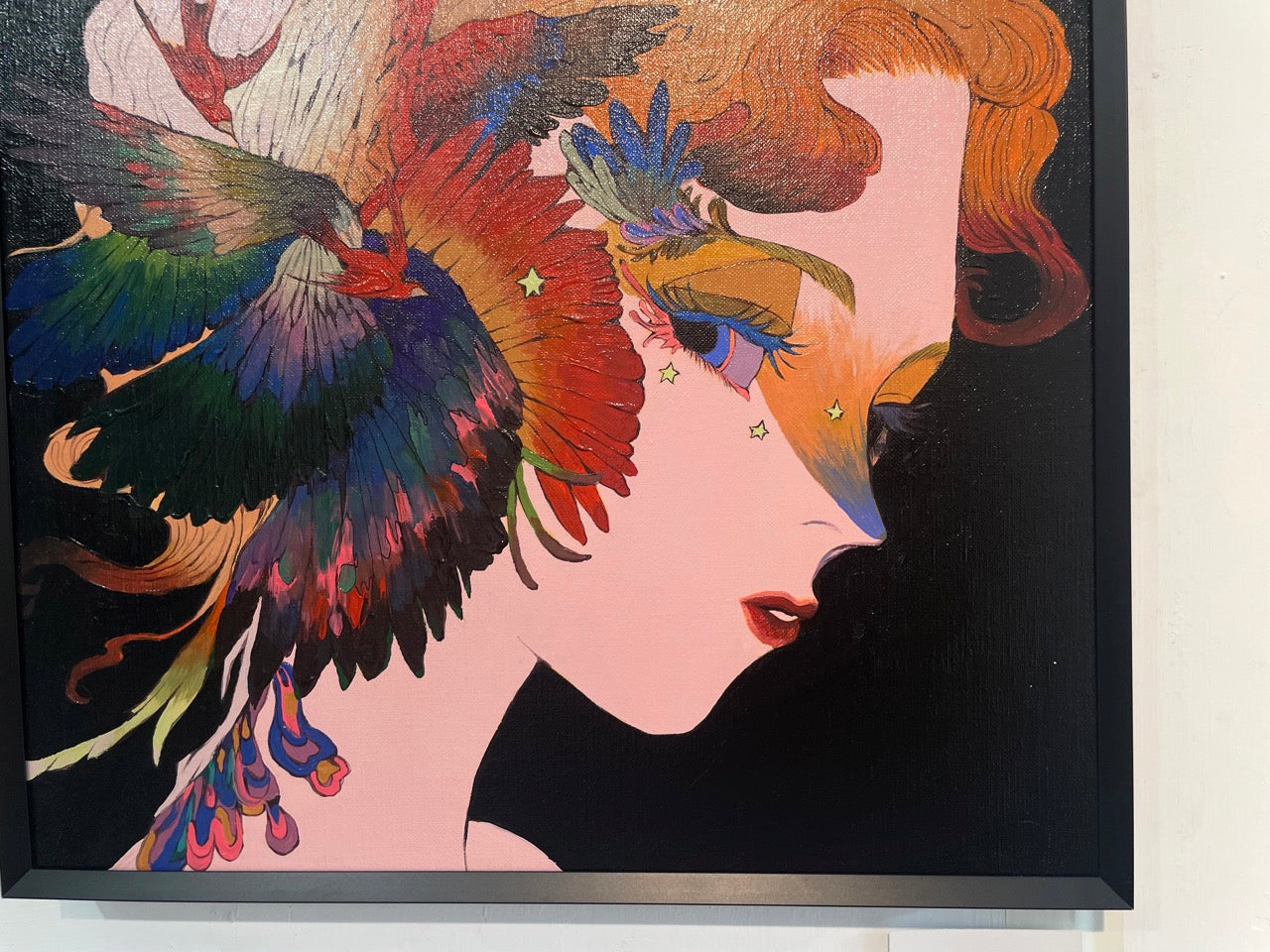 本系列以「羽毛」作為主題。羽毛象徵著「自由」和「上升」等意象,雖然畫面中描繪出女性的細膩與虛幻,但每一幅作品都是我傾注了積極正面的情感所創作的。