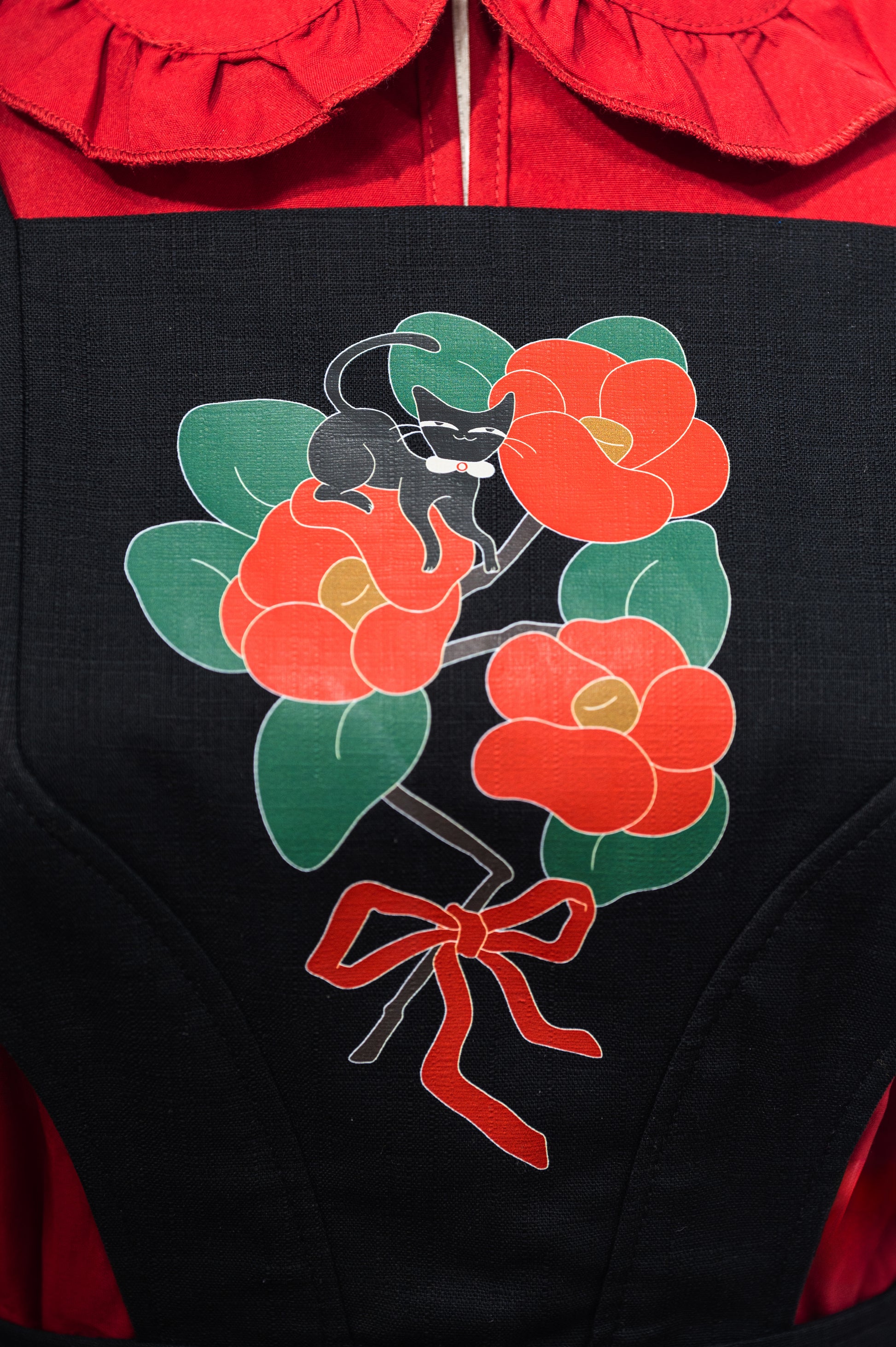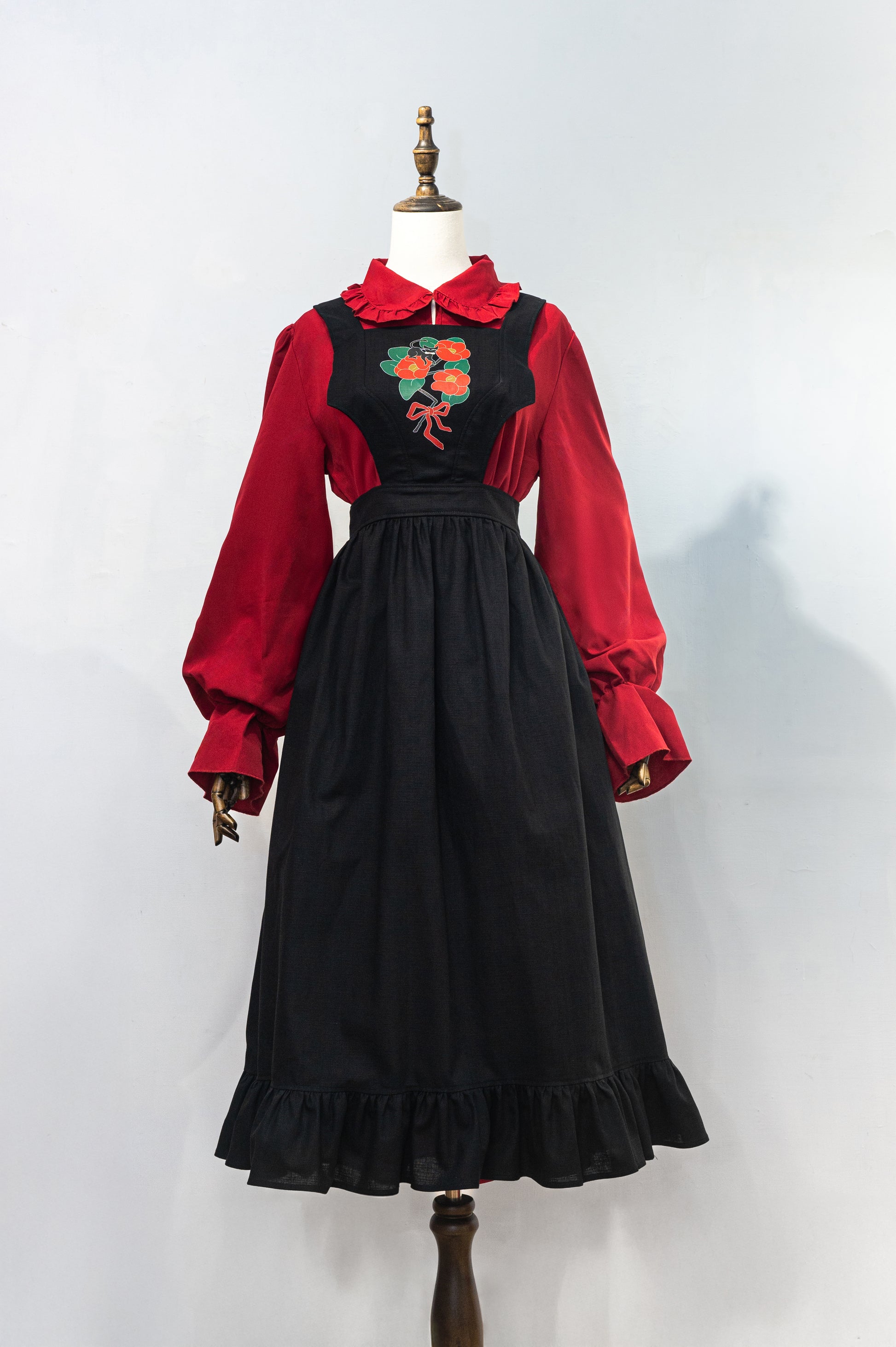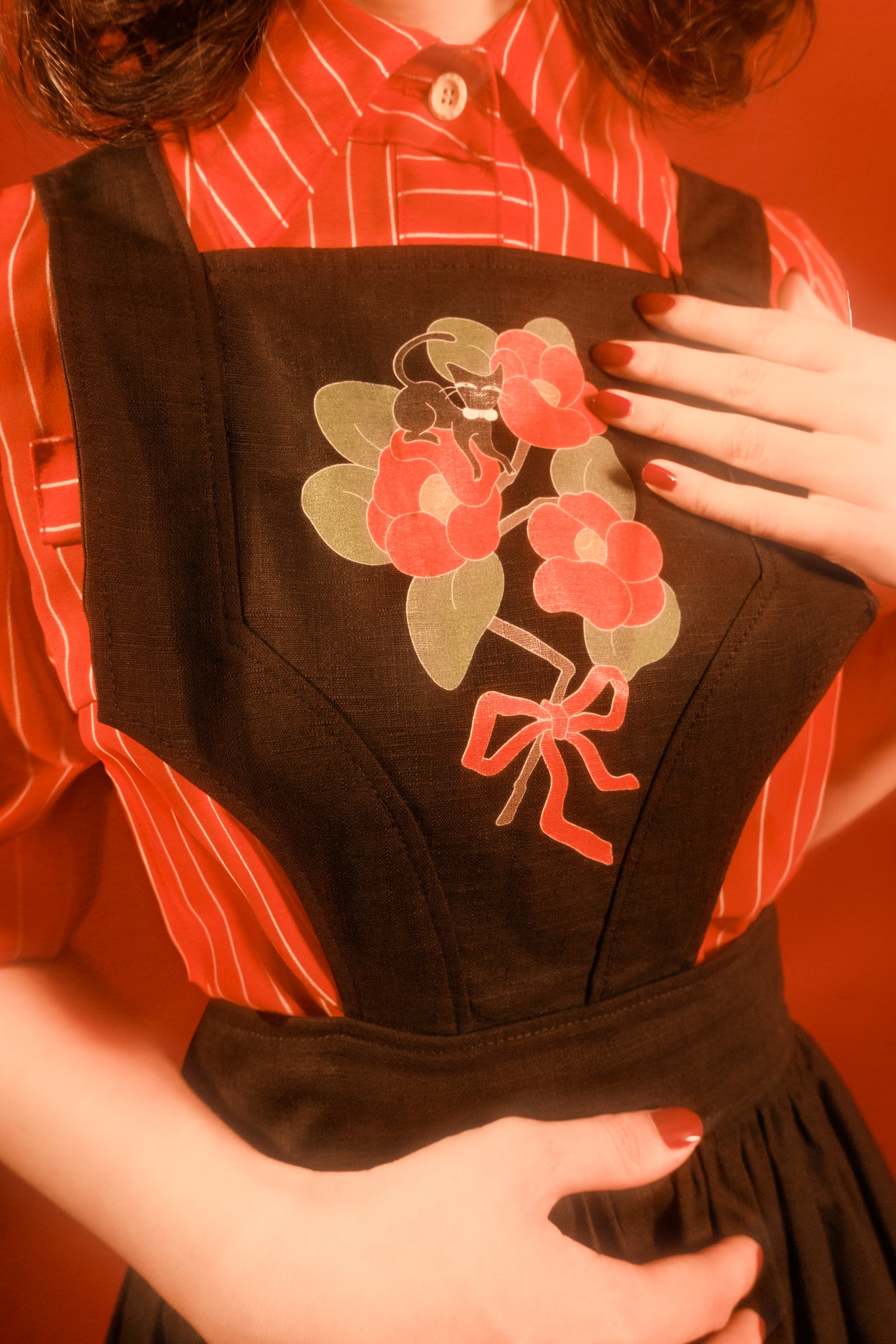 【 預購 】6"Stitches × TASOYA Maro聯名:エプロンの黒猫 吊帶洋裝〈 黑色 〉