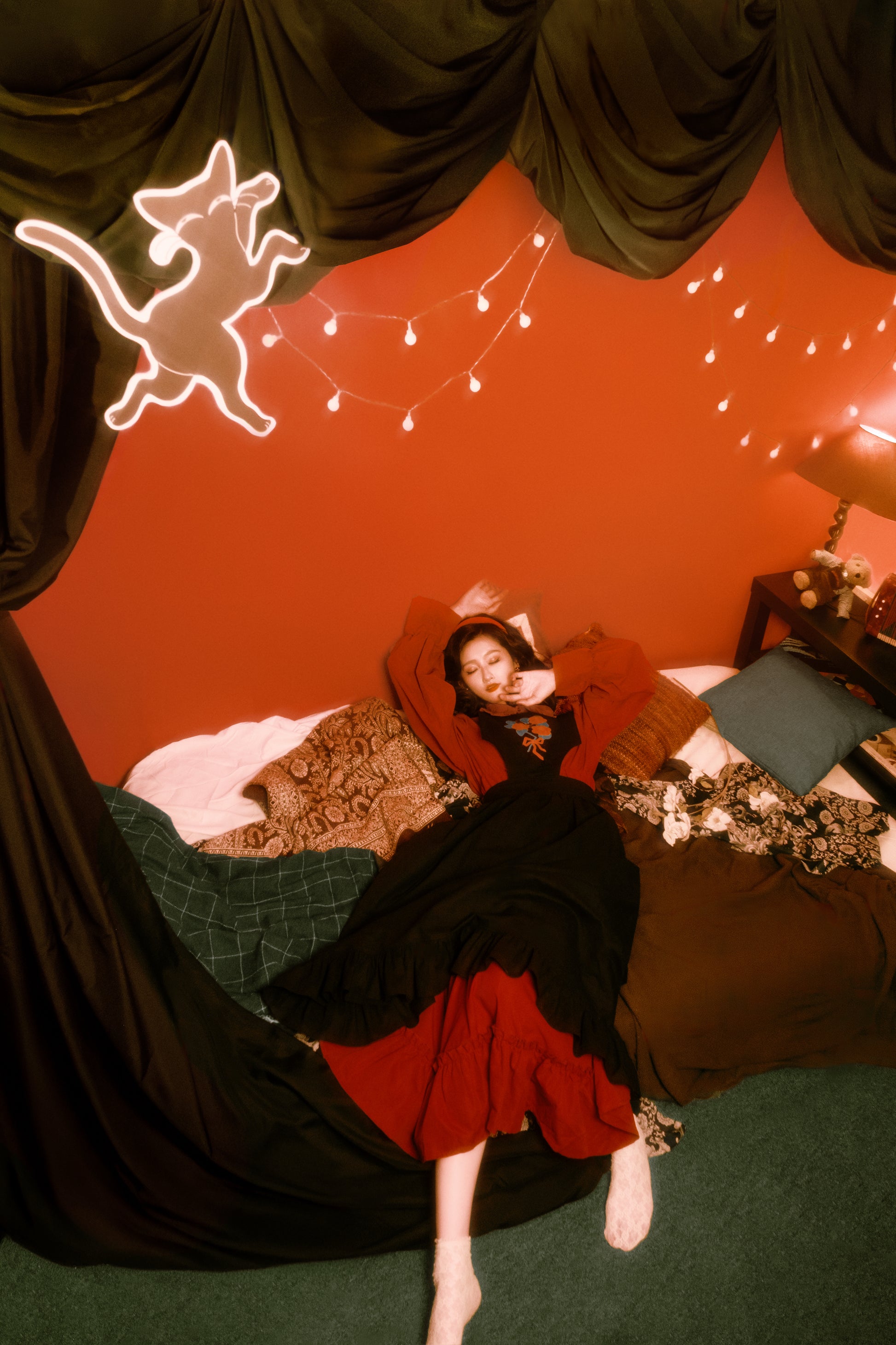 此次與 6” Stitches 的合作,是她首次將完整畫作轉化為服飾與配件,延續創作中不變的主題,讓夢與清醒之間的片刻,化為能被收藏的服飾。
