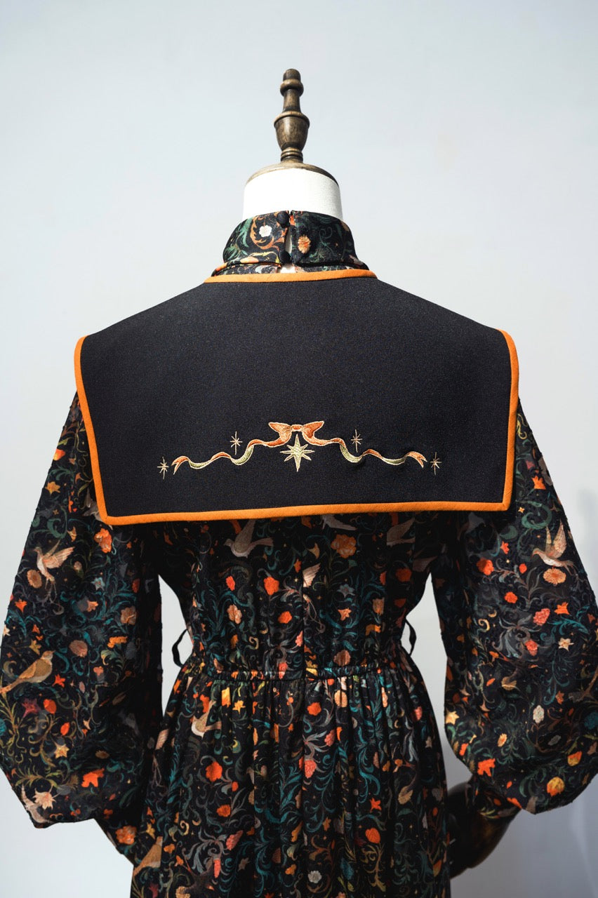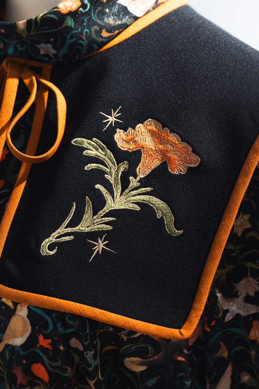 圖樣與刺繡設計皆出自 YASHIRO Nanaco 親筆繪製,透過高品質印花布料與台灣傳統刺繡工藝,忠實呈現畫作中的色彩與光影。全系列作品皆由 6” Stitches 工坊親手製作,保留縫線的溫度與結構的平衡,讓藝術轉化為可穿戴的日常風景——既柔軟又堅實,既夢幻又真實。