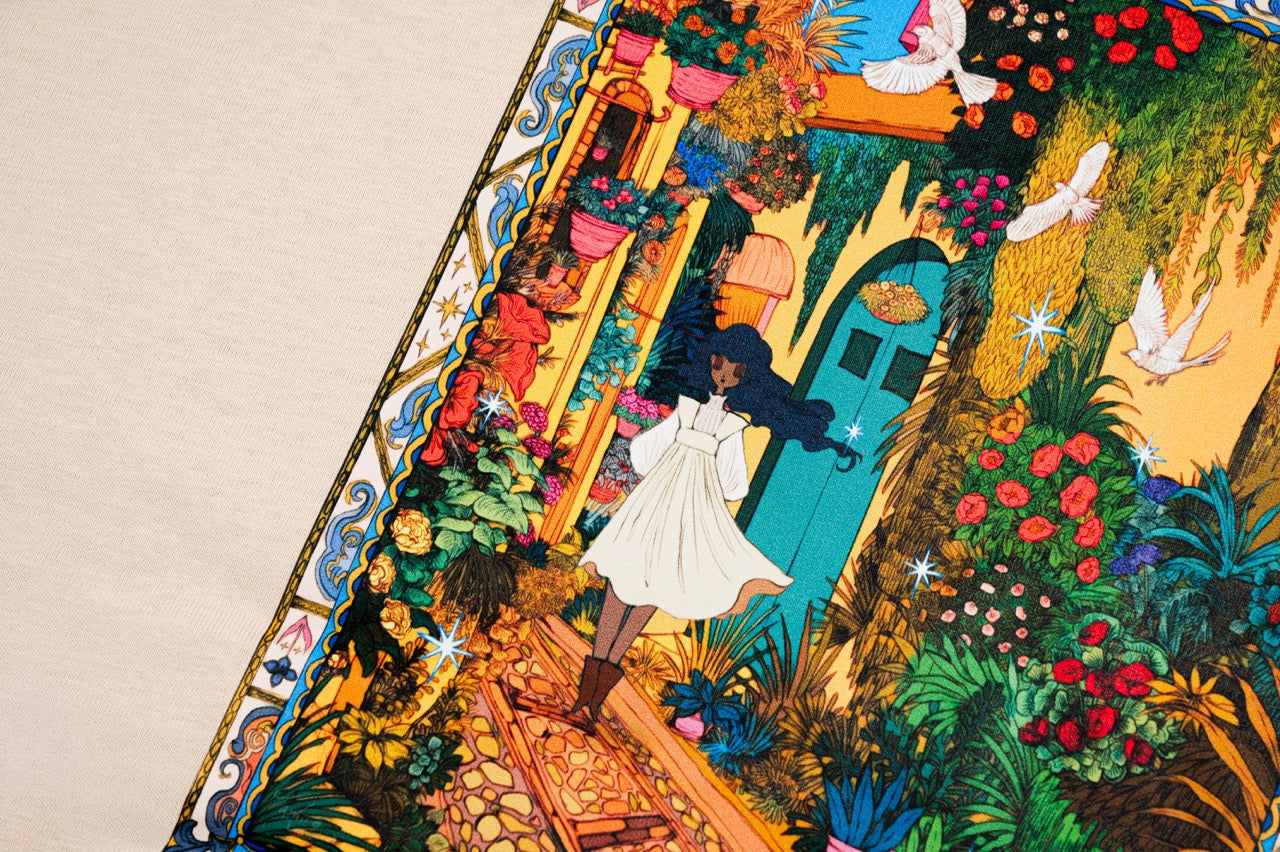 《Flower Temperature》靈感源自藝術家八館ななこ在台南的短暫生活,透過細膩的筆觸捕捉這座城市獨特的氣候與風情。台南的花籬、瓷磚與裝飾,以及南國微風帶來的清新與溫暖,共同交織出詩意盎然的視覺語言。